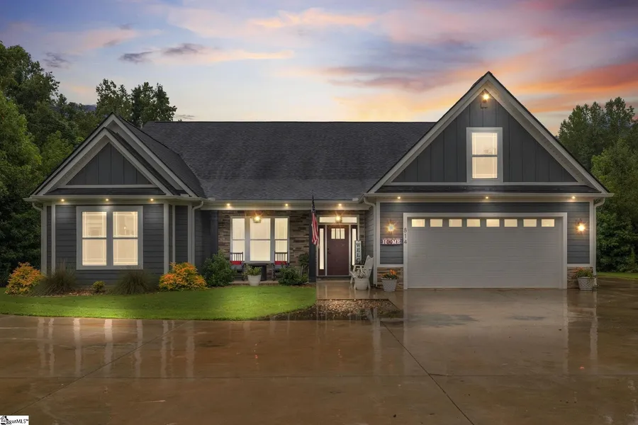 Another amazing property brought to you by Abe Mills, ALC. Take a look at this absolutely stunning 4BR/3BA home featuring an office, bonus room, and private guest quarters! Offering over 3,200 SF of living space in the main home plus nearly 800 SF of additional living space in the guest suite above the detached garage. Thoughtfully designed with energy efficiency in mind, this beautiful home showcases hard board siding with stone accents, 9’ ceilings, extra-tall thermal windows, custom woodwork, tray ceilings with crown and rope lighting, built-ins, and so much more! The chef’s kitchen is a showstopper—complete with hardwood cabinetry, granite countertops, double ovens, gas range, large island with seating overhang, a dedicated coffee bar/microwave area, and a spacious walk-in pantry. Perfect for entertaining, it opens seamlessly to the great room highlighted by a floor-to-ceiling stone fireplace with a raised hearth. The oversized primary suite is a true retreat with a tray ceiling accented by crown molding and rope lighting, a luxurious bath featuring a custom tile shower and separate soaking tub, and expansive walk-in closets. Three additional bedrooms, an office/den, and a generous bonus room above the garage provide plenty of flexible living space. Throughout the home you’ll find custom woodwork and built-in conveniences, including a stylish entryway bench with storage and a thoughtfully designed laundry area. Outdoor living is just as impressive—enjoy covered porches, a pristine above-ground pool, playground, wood-fired cedar-lined sauna with its own shower area, and a spacious 1.82-acre lot with lush Bermuda sod framed by mature trees. The detached garage with guest suite offers a full kitchen, laundry hookups, living room, bedroom, and bath—perfect for extended family, guests, or potential rental income. Extra paved parking and sought-after District 1 schools make this property an easy choice. Call or text Abe at (864) 404-5424 to schedule your visit and make this incredible home yours today!
