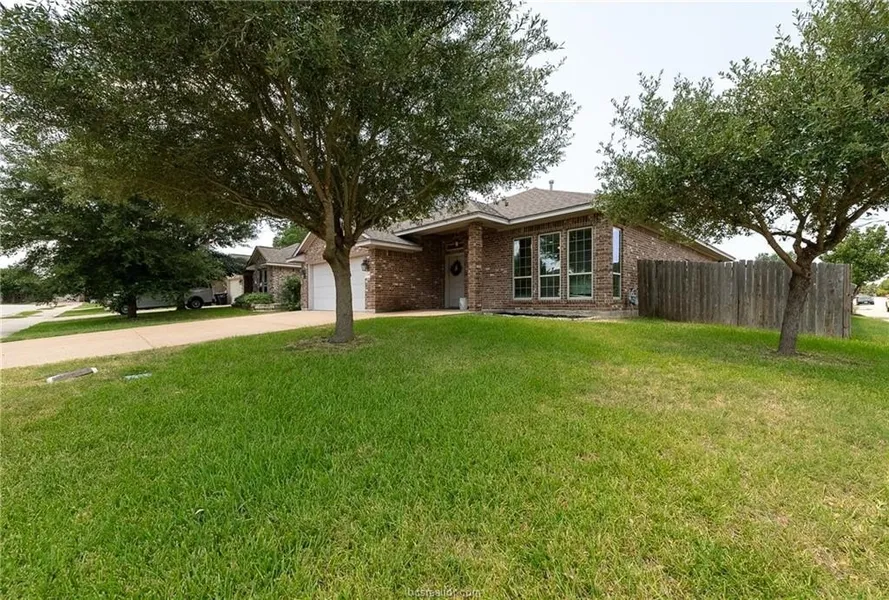 This move in ready home is ideally located a short walk to College Station High School, Creek View Elementary and Cypress Grove Intermediate schools, close to parks, medical facilities and a short drive to the popular and expanding Towerpoint shopping and dining destination! The open concept floorplan is light and bright with ample windows, a great plan for family gatherings or entertaining and a neutral updated paint palette. The well-designed floor plan offers 4 bedrooms, 2 full baths, a spacious family room with a corner bricked gas fireplace, dining area and a large kitchen. Wood grain vinyl plank floors are throughout all the living areas, kitchen, dining room, hallway, utility room and bathrooms. New carpet in all of the bedrooms. The island kitchen offers ample cabinet space, extensive granite counters, a gas range, microwave vent hood, built-in dishwasher and comes with a stainless steel side-by-side refrigerator. All of the bedrooms are spacious and offer great closets. An in-home laundry room offers a desk area and extra storage and has direct access to the two-car attached garage. A covered patio overlooks the fully fenced back yard with a full irrigation system. Schedule your showing today!