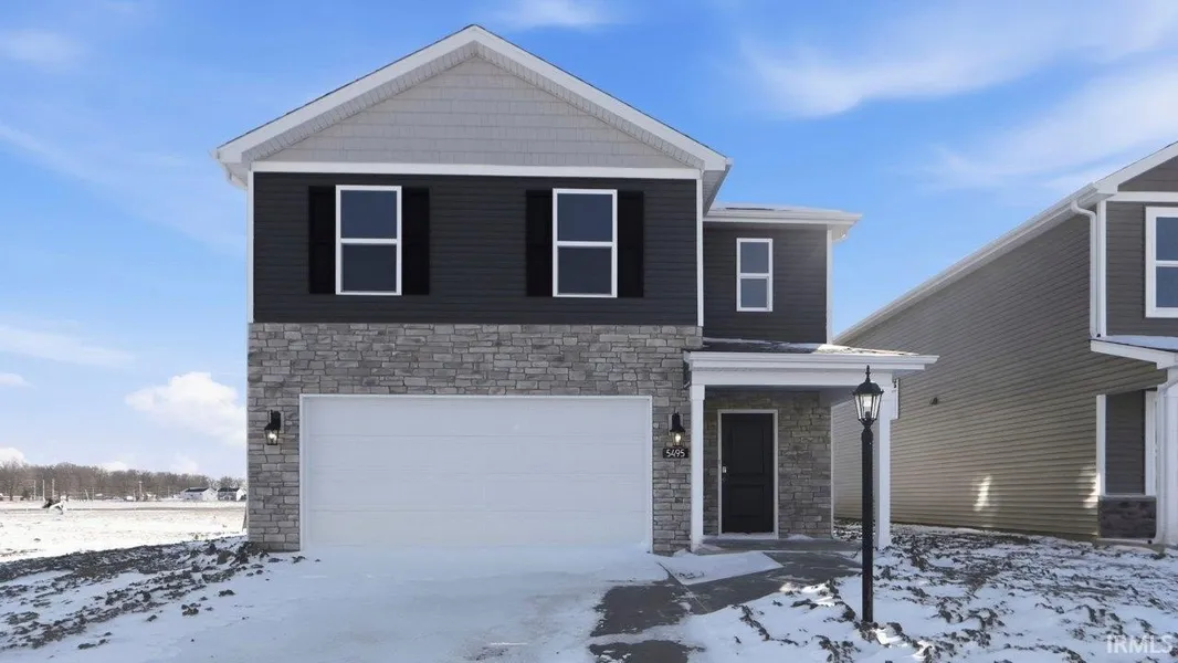Introducing 5495 Tranquilo Way, a new construction home in Grasslands at Broad Acres located in Fort Wayne, IN. Through the front door and foyer, find a spacious open layout kitchen, dining, and living rooms. These rooms flow together seamlessly to create the perfect entertaining hub. The kitchen is modernly designed with grey shaker style cabinetry, sleek quartz counters, Whirlpool stainless steel appliances, and a large center island with bar seating. Off of the living room, enjoy a private concrete backyard patio overlooking a spacious yard. The first floor is rounded out with a guest bedroom and full bathroom. Upstairs, enjoy game night in the open loft living space! The spacious primary bedroom features an ensuite walk-in closet and bathroom with a dual sink vanity with cultured white marble counters, private water room, and a fiberglass walk in shower. Three additional bedrooms provide plenty of room for large families, home offices, or personal hobby rooms! Find your next home today at 5495 Tranquilo Way!