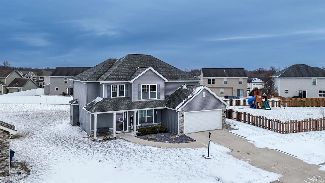 Price Improvement! Welcome home to Breckenridge Pass in the desirable Quail Creek community. This well-maintained 4-bedroom, 2.5-bath home offers a bright, open floor plan designed for comfortable everyday living and easy entertaining. Natural light fills the main level, highlighted by new luxury vinyl plank flooring throughout the main floor and bathrooms. The kitchen is the heart of the home, featuring beautiful Hickory Grabill cabinetry, a center island, walk-in pantry, and seamless flow into the breakfast area and family room. All appliances stay—including the washer and dryer—making this home truly move-in ready. The family room offers a cozy gas log fireplace, while main-floor laundry and a spacious walk-in coat closet add everyday convenience. Upstairs, the generous primary suite includes a private ensuite with double vanity and a large shower. Three additional bedrooms provide flexibility for family, guests, or a home office. Updated bathrooms add a fresh, modern feel throughout the home. Step outside to enjoy the landscaped yard and newer Trex deck—perfect for outdoor gatherings or relaxing evenings. The extended 3-car driveway offers extra parking space rarely found. Additional updates include a newer water heater and water softener, providing peace of mind for years to come. With a great layout, thoughtful upgrades, and a welcoming neighborhood, this home is a must-see.