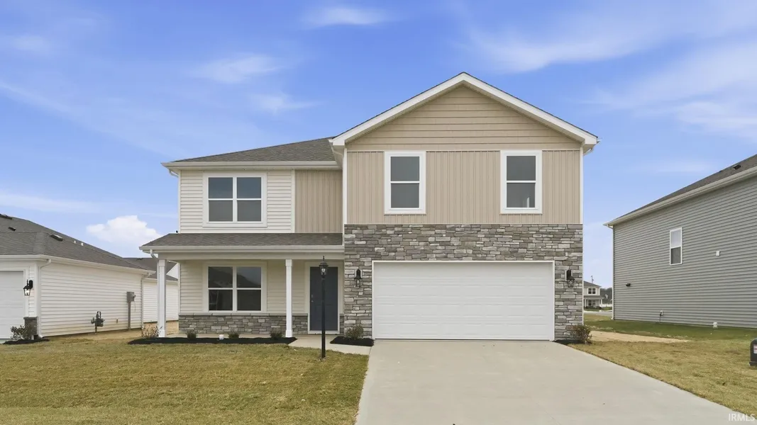 Welcome to 1025 Miller Woods Way in New Haven, IN, a spacious two-story home in the heart of Riverwalk. This home features front and backyard patios, giving you more room to enjoy both indoors and out. This 5-bedroom, 3-bathroom home spans 2,600 square feet and is built for flexibility. Off the foyer, you’ll find a flexible space that could be used for a private study or formal dining area. The open-concept great room, casual dining, and kitchen space flow together for effortless hosting and everyday life. A main level guest bedroom with nearby full bath is ideal for visitors, a home office, or multi generation living. Upstairs, four bedrooms, two bathrooms, and a large bonus room provide space for everyone. The kitchen features elkins grey cabinetry, miami vena quartz countertops, stainless steel appliances, and a walk-in pantry. The center island makes meal prep simple, while the layout keeps you connected to the dining area and great room. Upstairs, the owner’s suite includes a large bedroom and a private bath with double sinks with white marble counters, a walk-in shower, and a generous walk-in closet. It’s a personal retreat that balances privacy with functionality. Ready to make it yours? Come tour 1025 Miller Woods Way today and experience all Riverwalk has to offer! Photos representative of plan only and may vary as built.