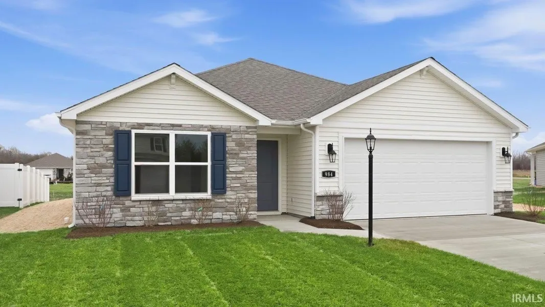 Check out 984 Rookery Way in New Haven, IN—a charming new home in the Riverwalk community. This home sits on a spacious cul-de-sac homesite, offering convenience and comfort for everyday life. Step inside this 1,825-square-foot home and find four spacious bedrooms and two full baths. At the front of the home, two secondary bedrooms share a hallway bath. A third bedroom is positioned near the laundry area and garage entry. The open living area connects the great room, dining nook, and kitchen for effortless flow and flexibility. In the kitchen, you’ll find everything you need and more—elkins sarsaparilla cabinets, lyra quartz countertops , and a generous island with a built-in sink and dishwasher. The layout is perfect for prepping meals or catching up with loved ones while cooking. A walk-in pantry gives you the space to stay stocked and organized. Your owner’s suite is tucked in the rear of the home, creating a private getaway. The bath includes a double-sink vanity, walk-in shower, and a huge walk-in closet with plenty of room for storage and comfort. Come see why Riverwalk is one of New Haven’s favorite neighborhoods!
