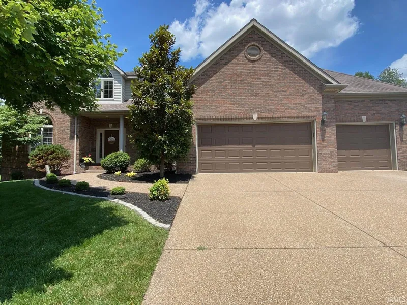 Welcome to this fantastic home in Halston Manor, conveniently located on the West side of Newburgh close to all the Newburgh amenities and minutes from Evansville's bustling Eastside. This 5 bedroom, 3.5 bathroom home has it all and has been meticulously maintained. As you enter, you'll notice lots of natural light and soaring ceilings, crown molding and more. Off the entry is the updated main level office or den with french doors and nicely painted accent wall. The formal dining room has a new light fixture, triple crown, tray ceiling and is shared with the living room with vaulted ceilings. The kitchen has a brand new custom island, beautiful backsplash, quartz countertops and undermount sink, new refrigerator and includes all appliances, including gas range. There are plenty of cabinets and an additional pantry closet. The breakfast nook adjoins and has access to the covered rear patio with new west facing sun shade! The family room is large, has a gas log fireplace and is open to the kitchen, perfect for entertaining. The main level owner's suite is a nice size, has a tray ceiling and attached private master bath with dual vanity, jetted tub, separate shower and walk-in closet. Finishing off the main level is a remodeled and updated half bath with new vanity, light, toilet and fixtures, mud room closet with bench seat, storage and hooks for coats, and separate laundry room with laundry sink and storage. Upstairs you will find 3 (or 4) additional bedrooms with a bonus room (or 5th bedroom) with two full baths. The 5th bedroom/bonus room offers corner windows, an ensuite full bath, walk-in closet and huge walk-in attic storage. There is an additional full bath down the hall as well. Outside, the yard is professionally landscaped, private and peaceful. The large 3+ car garage offers plenty of storage for vehicles, toys and lawn equipment. Some of the many updates per seller include: Roof (2018), Landscaping front and back with fresh mulch (Professionally installed by Colonial Classics), outdoor lighting and paver patio, both HVAC systems (2024), Water heater (2025), updated painting throughout, WIFI garage opener, new carpet in several rooms (2023), kitchen remodel, New refrigerator (2025), painted garage doors & front entrance, all new fixtures and hardware on doors throughout, garbage disposal, and much much more.