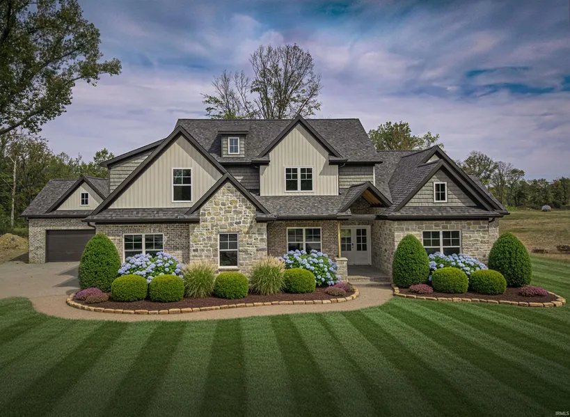 Welcome to this stunning custom home in the exclusive Victoria Woods neighborhood, proudly built by award-winning Hirsch Custom Homes. Ideally situated just minutes from Friedman Park with convenient access to dining, shopping, and top-rated Castle schools. Designed with livability and luxury in mind, this functional floor plan offers a main level primary suite featuring a spa-like bath and a dream walk-in closet with direct access to the laundry room. Two additional main floor bedrooms and a full bath provide flexibility for family or guests. The foyer entry opens to a formal dining room, while the heart of the home flows effortlessly into the living and kitchen spaces with high-end finishes throughout. Upstairs, a large bonus room and additional bedroom with full bath create the perfect teen suite, guest retreat, or home office. Located on a desirable corner lot, enjoy outdoor living year-round from the covered patio. Currently under construction with completion expected Fall 2025 — there’s still time to personalize and make this incredible home yours!