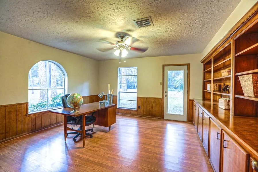 Spacious home on beautiful wooded lot with two living areas - one with wet bar, office, dining, island kitchen with breakfast room, extra large utility room & pool. The pool was refinished, including pumps & filters, in 2015.