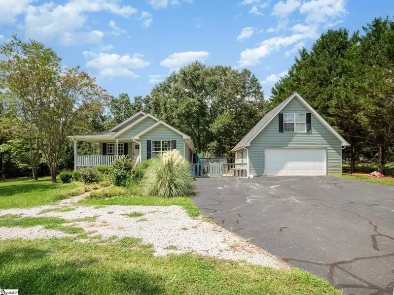 Welcome home to this 3 bedroom, 2 bath retreat nestled on 0.65 acres. A spacious 2-car detached garage with an upstairs storage room offers plenty of room for vehicles, hobbies, or a workshop. The kitchen, complete with all appliances, opens with a convenient pass-through to the living room—perfect for entertaining. The master suite boasts a walk-in closet and tub/shower combo, while the entire home is designed with low-maintenance flooring and no carpet. A tankless water heater provides modern efficiency. Step outside to enjoy the deck and patio, ideal for relaxing or gatherings, all set on a quiet private drive that offers peace and privacy. Ask about how you can save money using our preferred lender when buying this home.