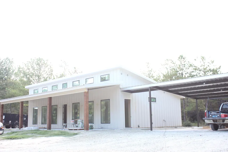 Brand New Construction home and shop nearly complete, just in time for cooler weather! Less than 5 minutes to Lake Livingston and tucked away in the pines of East Texas, this modern Cabin in the woods will be at the end of a winding driveway and the open floor plan will be perfect for hosting your family and friends. The pictures of the darker cabin are for reference and the grey cabin is the current cabin being built by the same custom home builder. The home is 1688 square feet, the fully enclosed shop on a slab for storage and equipment is 30x40 and the carport is 25x25. If time allows, you will be able to work hand in hand with the builder to make this home everything you have dreamed of and more. Acreage can be added as well.