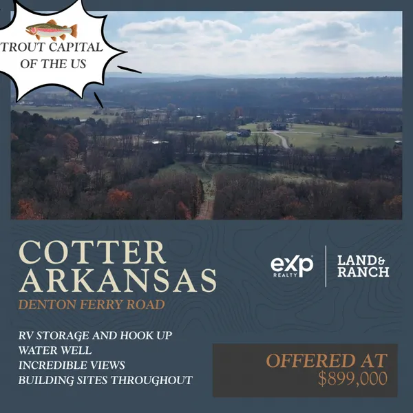 Exceptional 60.87-Acre Property with Development Potential in the White River Valley Cotter, Arkansas Welcome to a truly rare find in the heart of the Ozarks. Located in the scenic White River Valley, this 60.87-acre tract in Cotter, Arkansas offers breathtaking views, natural water features, and endless possibilities for development or private enjoyment. Whether you're envisioning a private estate, cabin resort, recreational retreat, or investment property, this land delivers the setting and infrastructure to make it a reality. Property Highlights: Premier Location: Situated along Denton Ferry Road with major road frontage just past Hightower Creek, the property features a gated entrance and is only minutes from the White River-renowned as one of the country's top trout fisheries. Stunning Views: Elevated building sites overlook the river valley and surrounding mountains, offering pano...