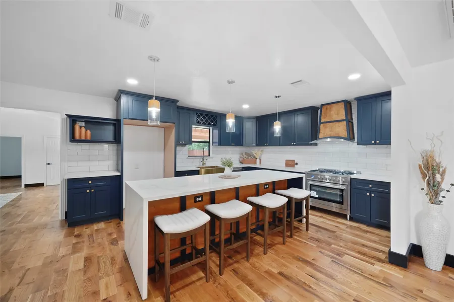 Welcome to 701 W 39th St in the heart of Garden Oaks. This fully renovated, architecturally redesigned single-story offers 3,500+ sq ft with 4 bedrooms, all ensuite, plus a powder bath, situated on over 1/3 acre. The chef’s kitchen features stainless steel appliances, quartz countertops, and a waterfall island with breakfast bar, opening to the living, dining, and oversized family room — ideal for entertaining. Three bedrooms, including the primary suite, are located at the front of the home. The fourth bedroom sits privately at the rear with its own entrance, perfect for multigenerational living, guests, or even a home office. Zoned to sought-after Garden Oaks Montessori (approx. 3-minute walk) with easy access to 610, 45, and nearby dining and entertainment in the GOOF area.