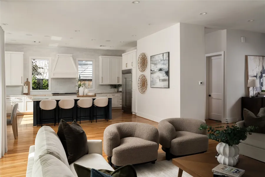 Welcome to 2715 Robinhood, a recent construction by Regan Custom Homes. This thoughtfully designed brick home offers 4 beds, 4.5 baths, a private study, bar, and an upstairs game room - ideal for everyday living & entertaining. The open floor plan is lined by a wall of windows that flood the space with natural light and showcase the beautiful hardwood floors. All secondary bedrooms feature ensuite baths w/ quartz countertops & designer fixtures. The chef’s kitchen offers exceptional storage, huge quartzite island, high-end appliances and walk in pantry. The expansive primary suite is a true retreat with a sitting area, soaking tub, double vanity, and an oversized walk-in closet, delivering a spa-like, luxurious feel. Outdoor living shines w/ plush turf and a pool w/ waterfall features. Updates include: surround sound, extended driveway, security cameras, drapery, WiFi boosters, elevator ...