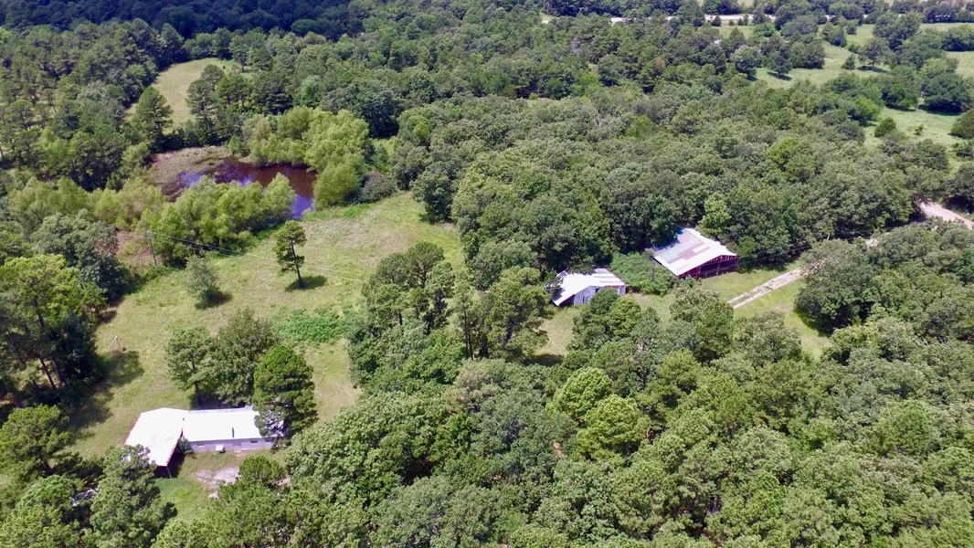 This is a nice little weekend retreat that is perfect for any hunting or recreational activity. It 19.85 acres located just north of the scenic Robbers Cave State Park. This property features an approx. 850 sq. ft. cabin with a large 150 sq. ft. concrete shelter off the west side. The cabin is surrounded by huge Short Leaf Pine trees, which create a cabin view second to none. There is a nice pond on the west side of the cabin and two large barns towards the front of the property. The cabin does have electric and a well with water ran to the it. The property has county road frontage that connects to highway 2.