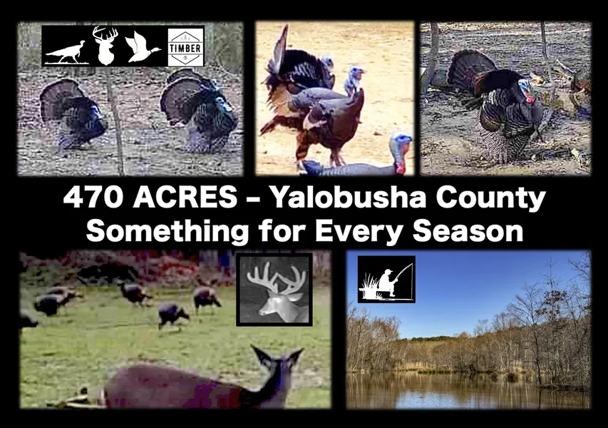 This entire area is well known for the thriving deer population, and it's absolutely loaded with wild turkeys --- even the creek here is named for them. (See game camera pictures in photos below.) Located between Water Valley and Coffeeville, the tract is about 40 minutes south of Oxford and about 25 minutes east of I-55.