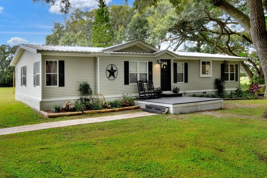 Extremely hard to find future family compound! A move-in-ready 3BR/2BA manufactured homewith adjoining vacant parcel for a second home. Boasting a clean and updated look, the home features farm-house finishes, a bright and open living and kitchen area, and wood burning fireplace. The kitchen has a cook-top in the island and window over the sink, providing great views from each space! Master suite has a walk-in closet, double vanities in the bathroom, and plenty of windows. There is a 26x26 enclosed workshop with power including 50amp service. Spacious front deck is tucked neatly under the shade canopy of the oaks and includes a walkway to your crushed asphalt, circle-drive. Also outside, youll find a wellmaintained above-ground pool, animal pens and a small pond. The additional homesite sits just to the south ...