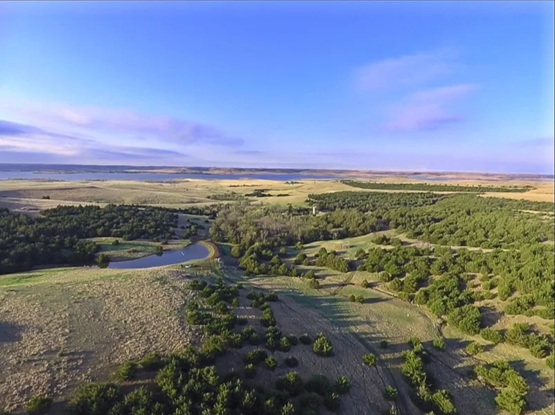 The Turkey Creek Ranch is unlike any ranch you will find in all of Kansas. Bordering the North shore of the highly coveted Wilson Lake area in North Central Kansas, this ranch consists of 850 acres of native grassland, cedar-lined hillsides and canyons, multiple ponds, a small creek bottom, and a stunning timber framed cabin situated within one of the most peaceful settings you could ever imagine. With over 2,000 square feet of living space, the cabin has been the focus of much detail by the owners and is highlighted on the exterior by an incredible wraparound deck with views of the small creek bottom that eventually flows into Wilson Lake. The owners titled the ranch “Turkey Creek” because of the high population of Rio Grande turkeys that can be seen from the back deck of the cabin, and it is hard to imagine a more relaxing place to watch the world come to life over a warm cup of coffee...