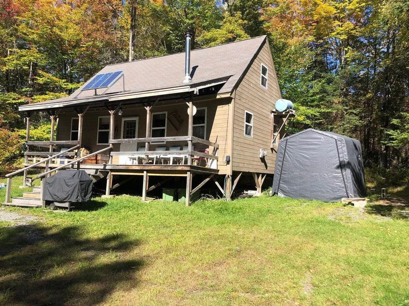 Turnkey cabin on 5 acres is located right off ATV and snowmobile trails! Public boat launch to Kingsbury Pond & picnic area are nearby. Enjoy watching the deer and turkey walk by from the large front porch and cozy up to the wood fire after a day of snowmobiling or ice fishing. This private cabin in a beautiful setting features 2 bedrooms on main level, open loft offers more sleeping space, compost toilet & privy, shower, solar and propane appliances provide modern conveniences for your home away from home.