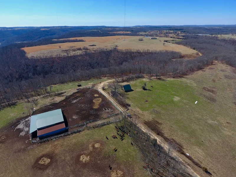 The wait is over. Skelton Farms is now available and could be yours. This highly productive turnkey cattle ranch is absolutely amazing and is truly a must-see. The majority of this ranch has been in the same family for multiple generations. Located just a short 35-minute drive from Fayetteville and only about 20 minutes from West Fork, this wonderful property is situated in the heart of the majestic Ozarks. It’s rare to see a tract this size with so much potential and beauty. The ranch offers a perfect combination of open pasture and hardwood timber, with approximately 345 acres cleared. Lush open fields, not only offer superb grazing but are also perfect for hay production, with multiple cuttings offered, most years. The ranch is fenced and crossed fenced and is ideal for rotating your cattle herd. There are two large barns that could be used for equipment or hay storage, as well as a working cattle corral with sorting pens, squeeze chute, and tub. In addition are the multiple ponds throughout that provide a great water source for the livestock. The ranch can also provide a nice annual income with two communication tower leases that will convey. There is also a great trail network that makes checking cattle or going to your favorite hunting stand almost effortless. In fact, this ranch is loaded with wildlife that includes deer, bear, and turkey, which call the area home. You will love the numerous hunting opportunities and the memories created that will last a lifetime. Finally, if you are thinking about building your dream home, the ranch will not disappoint. With countless building locations that offer some of the most breathtaking views overlooking the valleys below. Plus, there is rural water at the road and access to electricity throughout the ranch. Don’t miss out on this once-in-a-lifetime opportunity. Please call today for driving directions or to schedule your private tour
