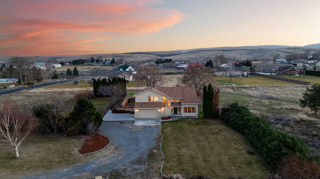 This meticulously maintained two-story home sits on 2.88 acres of irrigated land in East Kennewick, blending rural tranquility with modern convenience. Established trees and landscaping provide both shade and privacy when you need it most. With no HOA or CC&Rs, the property offers endless possibilities—build a workshop, pool, or pasture to suit your vision. Inside, 2,287 sq. ft. of thoughtfully designed living space ensures comfort and functionality. All three bedrooms are upstairs for privacy. The primary suite has been professionally renovated with new tile flooring, custom cabinetry, granite countertops, and a spa-like ensuite with premium finishes. Two additional spacious bedrooms and a newly updated full bathroom complete the second floor, which boasts brand-new flooring throughout. The main level offers a seamless flow between the formal living room, dining room, and kitchen. The k...