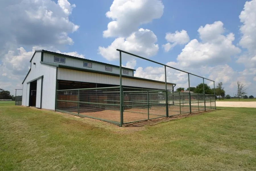 TURN KEY horse property, with an easy to maintain 17.170 acres of land with lush coastal and sandy soil. The property features an automatic gated entrance and fenced for horses with pipe. There is a very nice 7 stall horse barn with runs, automatic water, feed and tack room, and full bathroom with shower. Lighted roping arena with return alley and 50 gallon air compressor that feeds the chute. There are 5 light poles with 2- 1,500 watt lights on each pole, so yours able to rope day or night! Arena is set up so that water will drain properly, allowing you to rope soon after it rains. There is also pens for cattle with cover, 3 pens with cover for horses, and a large trap. Also located on this property is 2 RV plugs with water and septic hookups, 31x50 equipment shed with one roll up door and 2 sliding doors for easy access, and right outside is a 1,000 gallon fuel tank. The 25x20 workshop with electricity, houses a 3,000 gallon water tank. Also included in the sale of the property is the equipment and hay. Equipment included but not limited to, John Deer gator, John Deer zero turn mower, John Deer tractor with hay spear, disc, shredder, bucket and box blade.