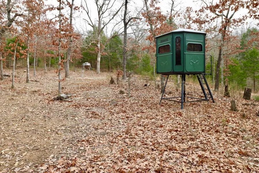 As you enter the property you first approach the campsite area sitting just off the spring-fed creek. A small spring on the property produces a year-round water source for wildlife while adding to the beauty of the surrounding sycamore, oak, and cedar trees that line its banks. Large stands of mature white oak timber encompass the majority of the tract providing an excellent natural food source. There are currently multiple campers onsite that will not convey with the sale but would leave behind an excellent spot for the next owners to build or utilize as they see fit. From the campsite area, you can look in any direction and find a trail that will lead you to numerous food plot and stand locations throughout the property. The current owners supplement feed year-round and run numerous trail cameras to keep an inventory on wildlife. This property is loaded with quality deer and also has an outstanding turkey population. Throughout the property, there are two Redneck box blinds, a Muddy box blind, and multiple wooden build box blinds that will all stay on the property. Along with the blinds, there are numerous feeders and ladder stands that have been strategically placed and will stay for the new owners.