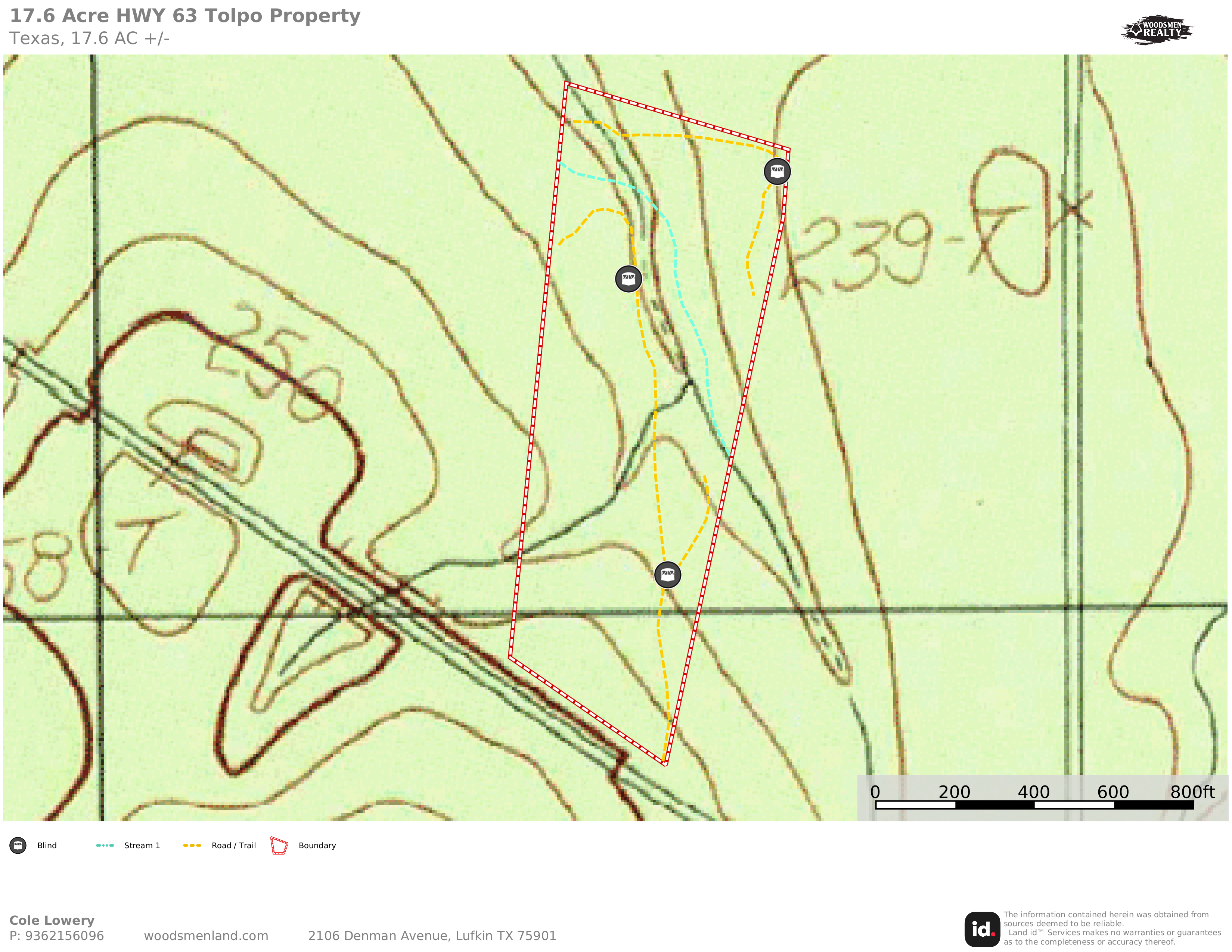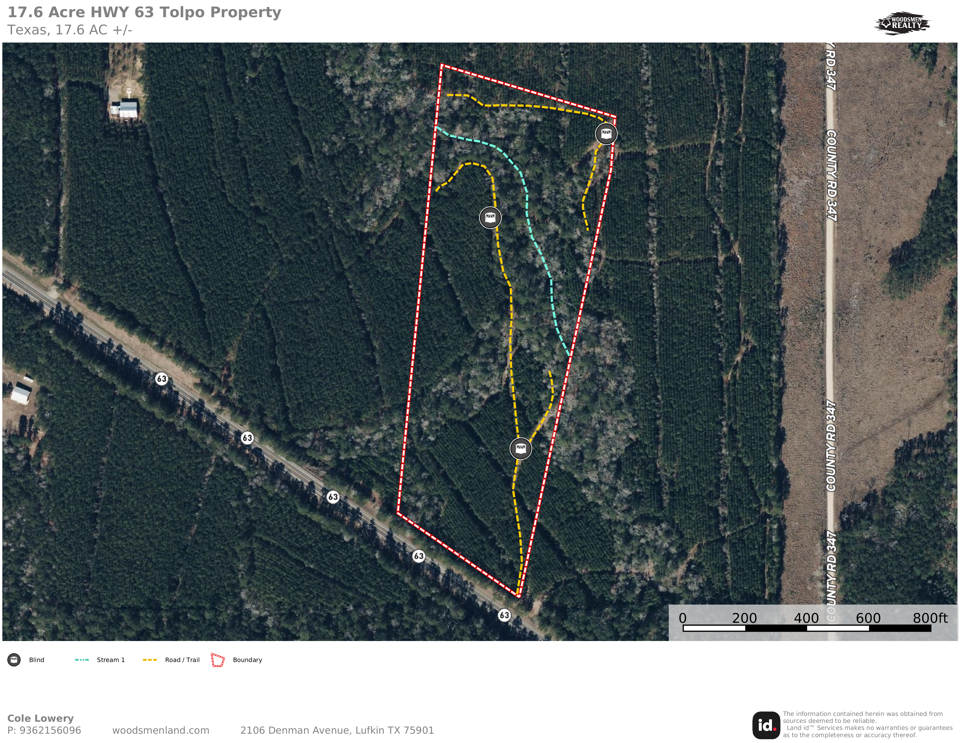 This property was fully improved to be a top-tier hunting property. Three very nice T-Blinds with accompanying large stainless feeders are located on the property. Large lanes have been established, providing ideal viewing windows and shooting lanes from these stands. The positioning of these blinds cannot be mentioned enough, situated off the large white-oaks covered creek section, capturing game traveling along their natural corridors. This creek has a large watershed, and keeps game on the property year-round. The proper hunting developments prove themselves, with abundant game pictures of massive whitetail bucks, turkey, bobcats, hogs, coyotes, and virtually every other hunt-able species in East Texas. Additionally, the way these improvements were made, this 17.68 Acres feels three times the size. One could put a small hunting camp or cabin in the front, and easily hunt 3 people on the property.