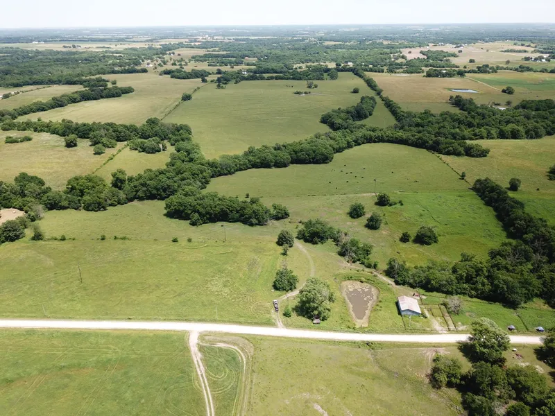 This 80 acre property located just south of Centerview, Missouri is the perfect addition or beginning to a ranching operation. The terrain carries a gentle roll through a seasonal creek bottom towards the back of the property which consists of a wide open fescue field that is terraced. Timber along the creek bottom provides great calving areas and cross fencing is found throughout the property. The seller installed an extensive corral system and working facility situated next to a 35’x42’ 3 sided barn with electricity. There is a deep well on the property with the well house being inside the barn. Double sided waterers can be found in two places with three halves serving the pens and one half serving the exterior. There is an additional waterer fed by the main pond as well. There is a 5 acre section of brome in the northwest corner of the property that is currently being hayed and is fenced off from the balance of the property. I have seen turkeys twice on the property and the seller said they are there almost every day. Rural water is available at the road and there are beautiful build sites on the property. This parcel is less than 1 mile from 58 Hwy on the south, and exactly 2 miles west of 58 just northwest of the 8 mile curve. The property is 17 minutes from Warrensburg, 12 minutes from Holden, and under 40 minutes from Lee’s Summit.