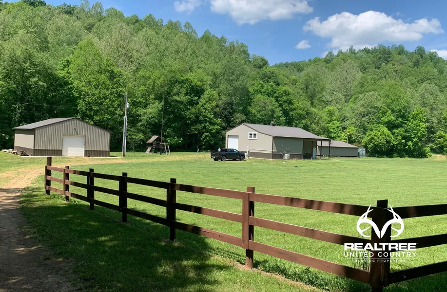 SALE PENDING! Vinton County Ohio land for sale. What an ideal recreational/hunting property this beautiful tract of ground is, featuring 120+- acres with keypad automated gated access on a dead-end gravel road in the heart of big whitetail country. This very well-maintained property has private board fencing all along the road frontage with the remote automated gate and includes a beautifully set up and finished 40x40 pole barn home that is the perfect retreat or hunting camp. This structure has it all with tile floor, 3 big-screen TVs, kitchen, laundry, one bedroom upstairs, one bedroom/office downstairs, and a beautiful tile shower bathroom. If that is not enough the owner put two automated 12-foot-tall garage doors on each side so you can pull an extra RV thru with RV hookups and use it also inside! Did I mention reverse osmosis water purification system, Generac backup generator with buried 1000 lb. propane tank, WIFI booster system & cellular booster, and one of the highlights of the property a very state of the art, high-tech fiber-optic live feed camera system featuring 4 day/night point to zoom 360-degree security/ wildlife viewing camera system that you can log in and view from anywhere! As you can see the owner spared no expense when it came to this property as it was used for a personal and corporate retreat for his technologies business. He also installed a very nice bridge you can drive full-size vehicles across a beautiful creek that runs thru the property and ran electric and fiber optic under the bridge for access on the other side of the creek to a beautiful secluded 3-acre field with a shooting range. Other structures on the property include a 36x40 garage with its own electric service, a 5 bay 20x52 lean-to with electric. All of this in one of the better whitetail areas in the county. I could go on and on about this very nice property that has it all with great whitetail hunting and lots of wildlife. These types of recreational hunting properties are getting very hard to find and this property will not be on the market very long. Give Realtree United Country Land Pro Jason Williams a call today at 740-352-3691 for more details about this very nice property.