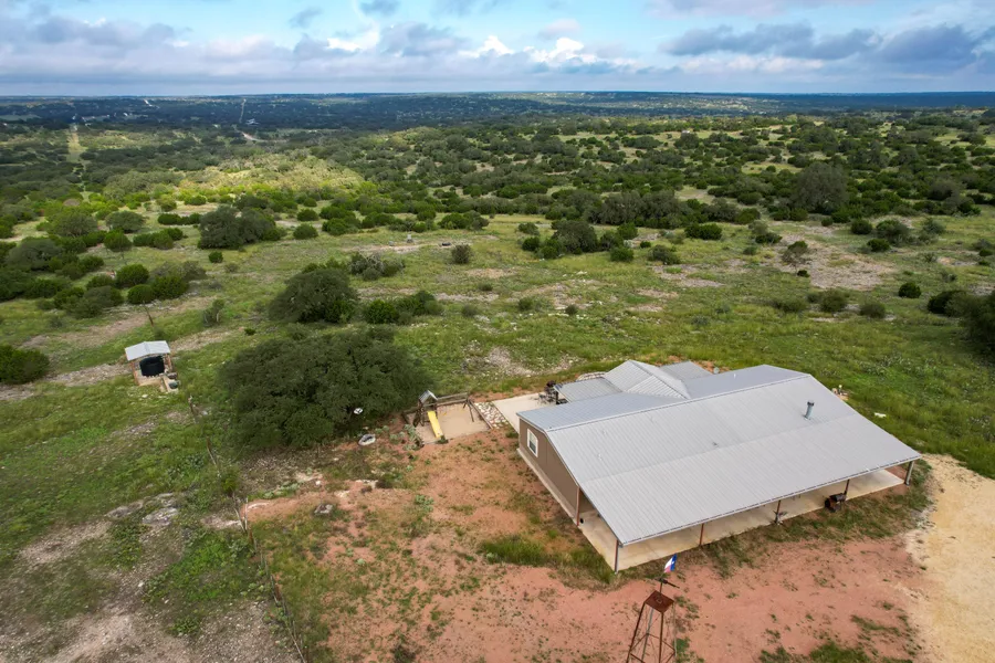 This is what everyone is looking for in Edwards County, but it is so hard to find. The ranch is at the end of a county-maintained road and approximately 10 minutes from Rocksprings! It is not in a subdivision, is low-fenced with nice-sized neighbors, and is loaded with game including axis, blackbuck, whitetail, dove, hogs, and turkey. This turnkey property conveys fully furnished and is ready to enjoy from the moment you close. The location is very quiet, and the house sits on a high point with beautiful views back towards Rocksprings. Covered front and back porches provide the ideal setting to view the sunset or enjoy the breeze. On those cooler nights, you can sit around the stone firepit and gaze at the stars! There is even a swing set and play area set up for the kids or grandkids.