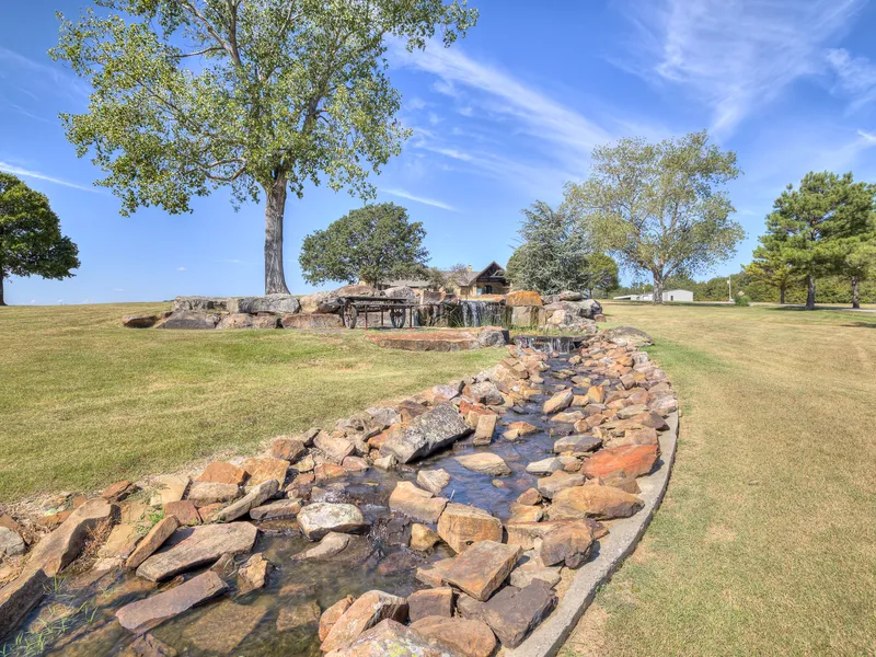 MASSIVE PRICE DROP! Welcome to the ultimate private resortspanning 60+ acres of Oklahoma paradise. This one-of-a-kind estate offers luxury, space, and resort-style amenities that are nearly impossible to find, especially at this new price. From the moment you arrive, the peace and privacy are undeniablebut you're still less than five minutes from I-35, making it the perfect blend of seclusion and convenience. The main home is packed with high-end finishes: vaulted ceilings, hardwood floors, granite countertops, custom cabinetry, and a stunning stone fireplace that anchors the open-concept living area. And just wait until you step out backTWO inground pools connected by a lazy river create a showstopping backyard retreat made for entertaining, relaxing, or hosting epic weekends. With a fire pit, covered porch, and sweeping views, the vibes are unmatched. The 60+ acres are equally impressive: rolling terrain, two stocked ponds, a gated entrance, trails, and plenty of space for livestock, recreation, or future builds. Equipment, furnishings, and additional property items may be negotiated with the salelets talk about what works for you. Whether you're dreaming of a luxury homestead, a short-term rental goldmine, or a vacation-ready ranch, this property delivers. You wont just buy a homeyoull be stepping into a whole new lifestyle.