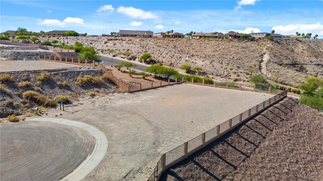 EXCEPTIONAL .28-acre cul-de-sac lot with no shared property lines with neighboring homes, offering privacy, fantastic views, and an ideal setting for a custom residence with an RV garage. Wide streets and the cul-de-sac provide effortless access, maneuverability, and convenient parking. Block walls are already in place. Several majestic palm trees adjacent to the property, maintained by the HOA. No time limit to build. Picturesque views of the Colorado River, Laughlin s casino skyline and mountains and sunsets are yours to enjoy daily. Watch the 4th of July fireworks over the Colorado River from the comfort of your backyard! Restaurants, shopping and entertainment are in close proximity and outdoor sports abound boating and jet skiing on the Colorado River and Lake Mohave, miles of trails for off-roading with easy access from your property, hiking, fishing and biking. Just 90 mins to Las Vegas. Come and settle in to Arizona living!