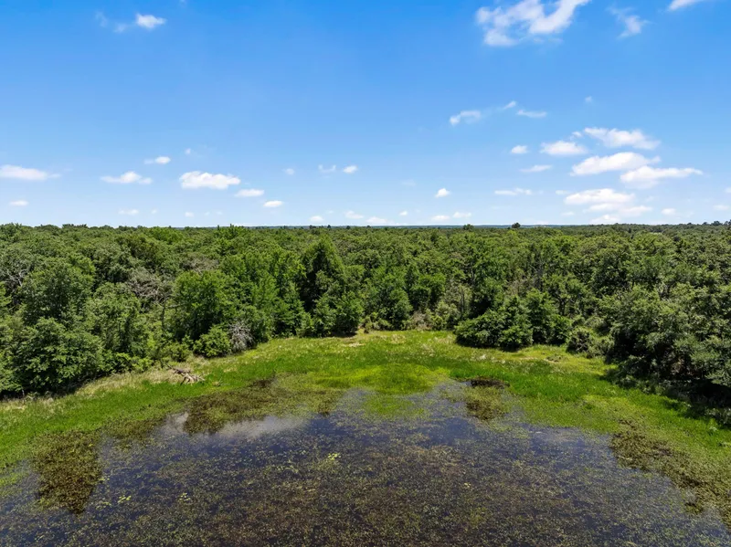 Twin Oak Acres comprises approximately 14 acres of raw land and 2 acres of improved pasture. The terrain is primarily flat, with gentle elevation changes of less than ten feet. The improved pasture, primarily composed of Bahia grass, offers a solid foundation for expanding grazing acreage. Twin Oak Acres shares a 1.5-acre pond with the neighboring property to the north, which is known to retain water year-round. The landscape features mature Blackjack and Live Oak trees, along with a mix of native brush species common to the area, providing excellent ground cover. Wildlife on the property includes Whitetail deer, seasonal waterfowl, wild hogs, and various varmints.