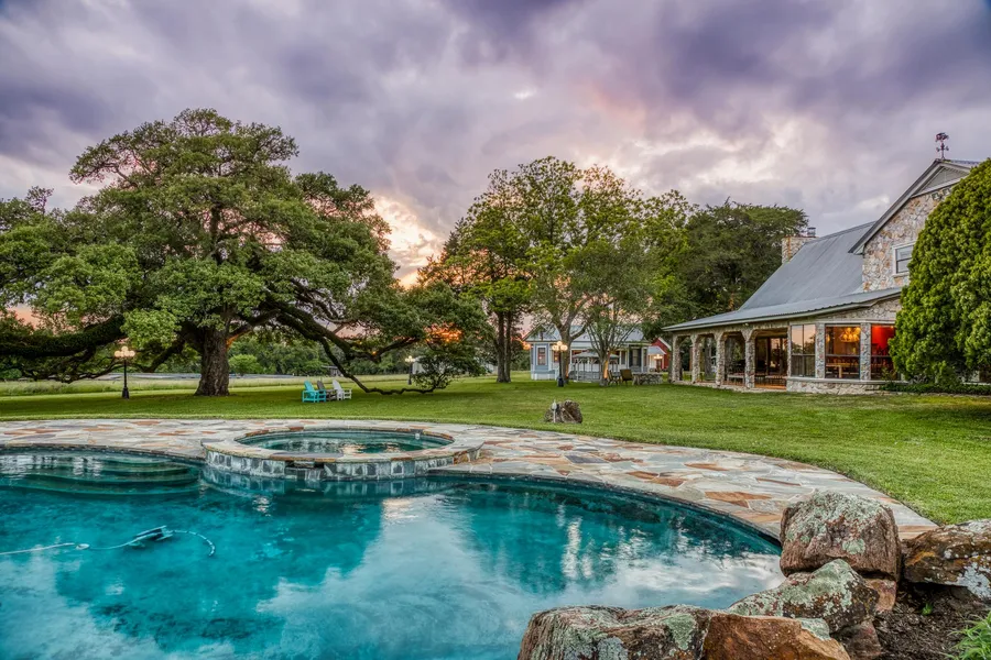 Welcome to Twin Oaks Ranch. This ranch is offered for the first time and has so much to offer for every buyer. This iconic ranch has been published in the WSJ, Chronicle & many others as it has made the list for its beauty, location, & amenities it offers. This was the family ranch of a legendary man, Charlie Thomas and wife Kittsie. They created a retreat as well as a place for recreation. It was also a place to call home to their infamous collection of antique cars. Once you arrive & drive through the gated entrance, you will be amazed what lies beyond a curtain of 100-year-old oak trees. There's not enough space to describe this ranch in one paragraph. You must see for yourself, from the custom Gruene Hall replica, movie theatre, grand prix go-cart track to several large climate controlled industrial buildings, the main home, guest homes, covered arena/basketball court & almost 6-acre...