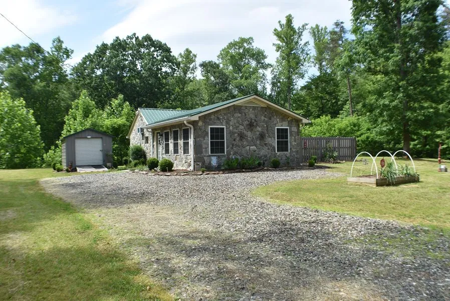 Here is another rare opportunity to own a home near Philpott Lake. Bordered by the government land, this home offers a great room with a fireplace, cozy kitchen and bedroom, and a metal roof. The yard is level for playing games in the summer and an outbuilding for housing your lawn mower. There is a courtyard with a privacy fence made of long lasting trex. With a stone exterior and wrapped trim, it's virtually maintenance free. Purchase a year pass to enjoy the lake just down the road. Heating and cooling via wall units. Property info per assessor and/or owner.
