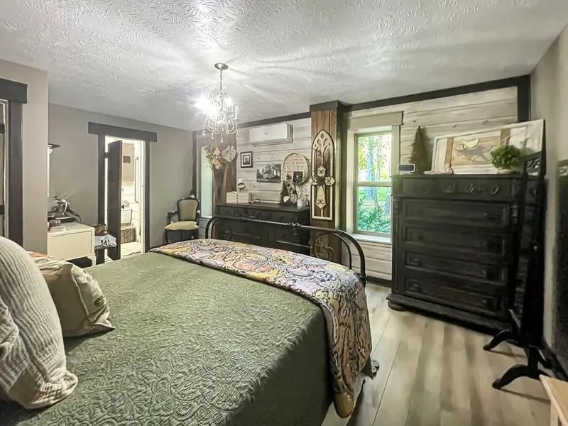 Welcome to your dream home! This stunning 3 bedroom, 2.5 bathroom barndominium combines rustic charm with modern elegance. Nestled on a spacious 2.387 acre lot, this unique property features an open-concept living area, showcasing a fireplace & unique built in accents. The well-appointed kitchen boasts sleek stainless steel appliances, granite counter tops, ample counter space, and an island, perfect for entertaining. Located downstairs there is a luxurious master suite complete with a walk-in closet & an en-suite bathroom with a walk in tile shower. A half bath is also located on the main floor. Upstairs has a large living room, bathroom & 2 additional bedrooms all with beautiful built in accents. The tall pull through garage will be convenient when hooked up to the boat. A detached carport and storage container is also included for extra storage. Located in a peaceful setting near Lake...