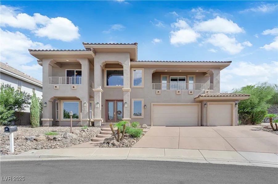 Elevated Luxury Living in Calico Ridge perched high above Henderson with sweeping views of the city, mountains and the Las Vegas Strip! This residence features a formal living & dining room, Gorgeous chef's kitchen w/wrap around counter top perfect for entertaining and a bay window nook, a spacious family room w/cozy firepace and patio access and stunning Marble Flooring thru-out the first floor. Upstairs, the oversized primary suite boasts a private balcony, dual walk-in custom closets and spa style bath with jetted tub, oversized shower & dual vanities. Loft with wet bar & second balcony showcases more incredible views! Two large secondary bedrooms share a large full bath. Outdoor living includes a covered patio w/stone terrace, and a brand new 12 person spa! Finished 3 car garage w/epoxy floors, storage and a newly installed water condtioner and comes with 2 BRAND NEW AC UNITS! Nothin...