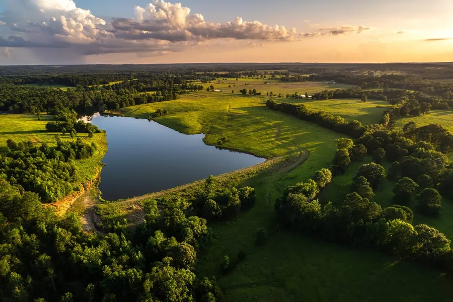 The 15-acre lake offers excellent bass fishing, featuring deep water, standing timber for structure, and shallow flats ideal for springtime spawning. The smaller lake and stock ponds also provide good fishing opportunities.