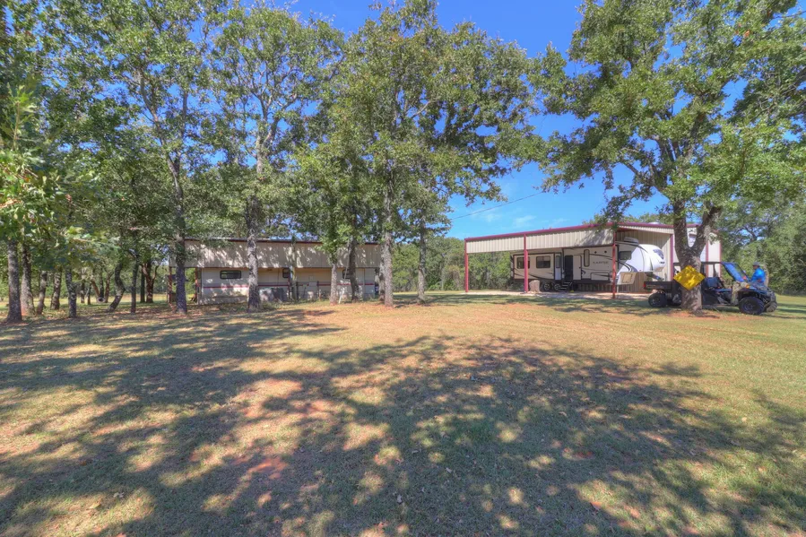 It checks all of your boxes! Here's your wish list: Private, Peaceful, living quarters, R V cover 13 ft. 8 in. tall and 50 amp hookups, Large metal shop with electricity and water, 2- 14 ft overhead doors, Workshop area, additional RV hookup, large pond with nice dock to fish off of, Fenced play/picnic area by the pond,, beautiful land with lots of trees, vegetation, pond (catch and release) stocked with catfish, bass, crappy, perch, smaller pond, LOTS and LOTS of game, Deer, turkey, fox, bobcat. Yes this place has ALL of this sitting on about 53+/- acres with perimeter fence. You're in the country but just 10 minutes to town, an hour to Waco, just over an hour to Ft.Worth! Just buy and enjoy. All the work is already done.