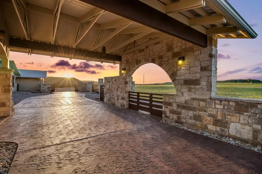 This unique ranch has a lot of character. It includes 60-80 foot elevation changes, seasonal Bee Creek running through one side, part of a large lake, rolling grasslands, lighted dog run, and 100+ pecan trees. There are hiking and ATV trails traversing the ranch including a concrete crossing thru Bee Creek into a heavily wooded wildlife area. There are also many sitting areas at points of interest scattered around. Three years of hand clearing has made this property more like a park than a ranch. Rare to find so many sought after features on a ranch of this size.