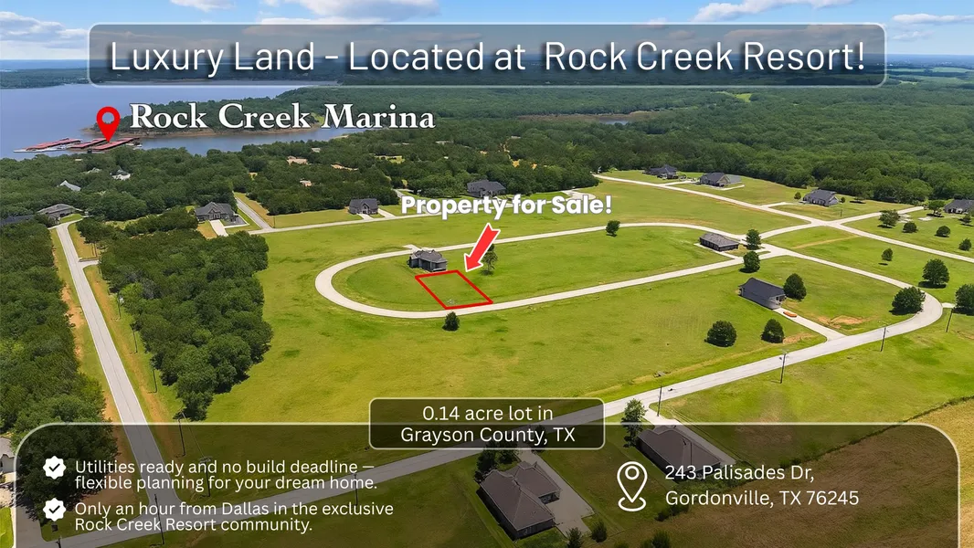 This premium lot in Rock Creek Resort offers you access to an amenity-rich, gated community on the shores of Lake Texoma. Whether you're building a primary home, weekend getaway, or investment property, this lot gives you incredible value and resort access at an affordable price.