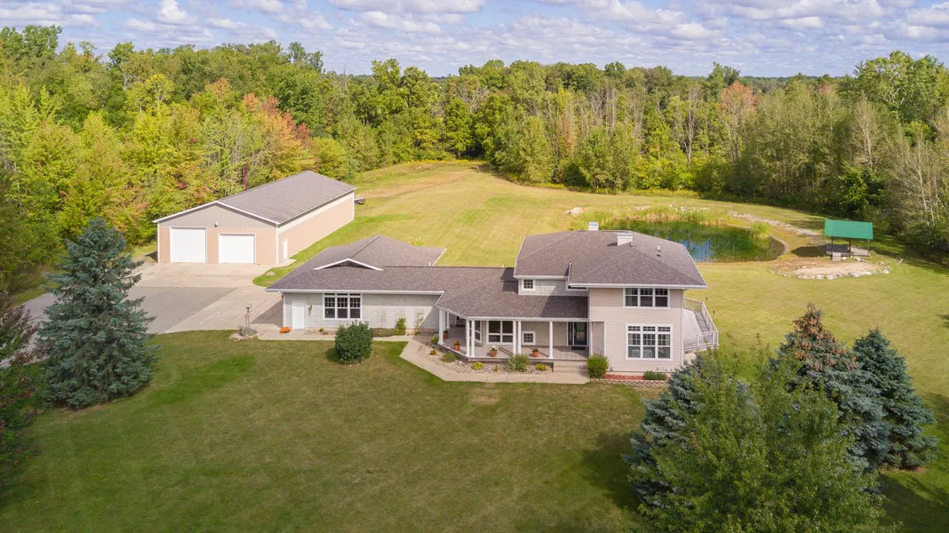 Unbelievable American Dream Home on 5.23 Acres with an acre of woods overlooking a 1/3-acre pond on a private cul-de-sac. This property has it all including a 40 x 80 pole building with 6 concrete floors, 14 x 20 sliding door on the rear, 12 tall overhead door on the front, power, water and gas. This property fits the bill as a multi-generational home with the full in-law suite on the lower level, the basement has separate gas and electric meters from the first floor and has separate high efficiency gas forced air furnaces. The builder of this home who is still the owner hit a home run combining quality and functionality while encompassing the perfect balance of land, home, room for the toys and outdoor entertaining area. A few of the highlights include: Large 1st floor living room with a wall of windows and it walks out to the deck overlooking the pond, 1st floor master suite, 1st floor laundry/full bathroom/mud room, open floor plan for the kitchen and dining room, In-law apartment in the basement with a master suite, full kitchen, bathroom, laundry room, office with attached half bath, living room that walks out to the patio which overlooks the pond. You can access the basement from the 1st floor and the garage. The second floor features the 2nd and 3rd bedrooms with a shared full bathroom. The pond features covered deck and a beach area. The attached 3+ car garage is 38' x 28', 11'+ tall ceilings, natural gas is present so that the garage can be heated. The house is set up for surround sound, throughout the house, outside the house and in the garage. The entire house is set up with cat 5 and a network interface board. Seller will consider non traditional sale options including property swaps, cash plus land, cars, trucks, heavy equipment,etc.
