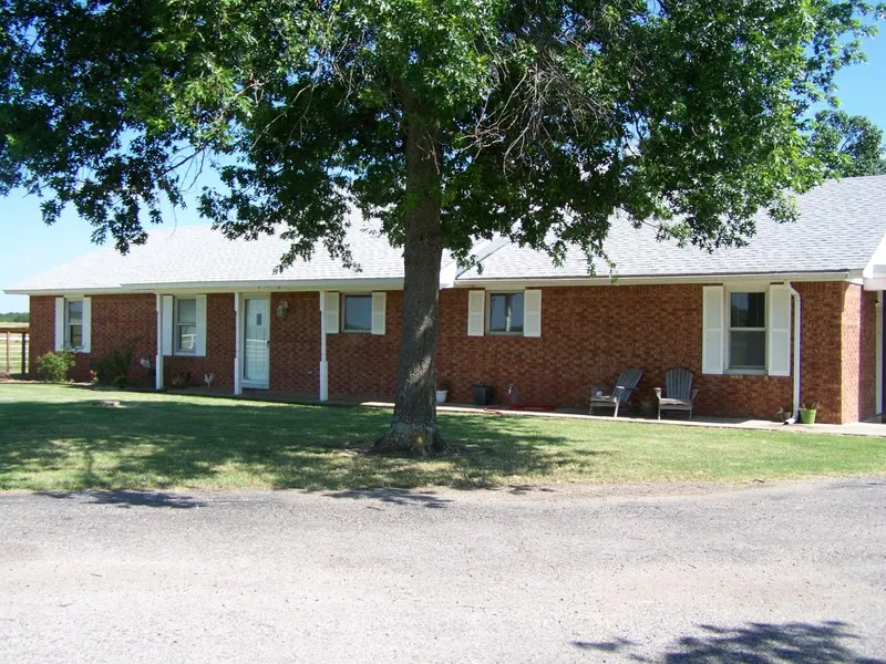 Nice brick home with 3 beds, 1 3/4 baths on 148.97 acres with hunting and fishing right at your back door! Kitchen has lots of cabinets , a pantry, and separate oven and cook top. Includes dishwasher, oven, range, and refrigerator. Large utility/mud room with storage closet and cabinets. Master bedroom has two closets and a 3/4 bath with shower and double vanity. Two extra bedrooms are good sized with nice closet space. Upgrades in 2013 include new tile, new roof, and new hot water heater. Living is open to kitchen and dining and has a brick, wood burning fireplace. Sliding glass door leads to sunroom that is heated and cooled with pet door installed that leads to separate fenced area with cellar. The 148.97 acres surrounds the property and is host to abundance of wildlife. The acreage is divided into 5 pastures, one has been used for hay, and others for hunting and grazing. White cable/pipe fencing surrounds the home, corral, and arena. Four barns-one is a large corral barn with ample space for equipment and a tack room on one end, another is a drive-through barn for hay or equipment storage, and two others for animals and storage. Five ponds are on the property, two stocked with catfish and bass. Acreage is partially wooded and one pasture has been used as a hay field.