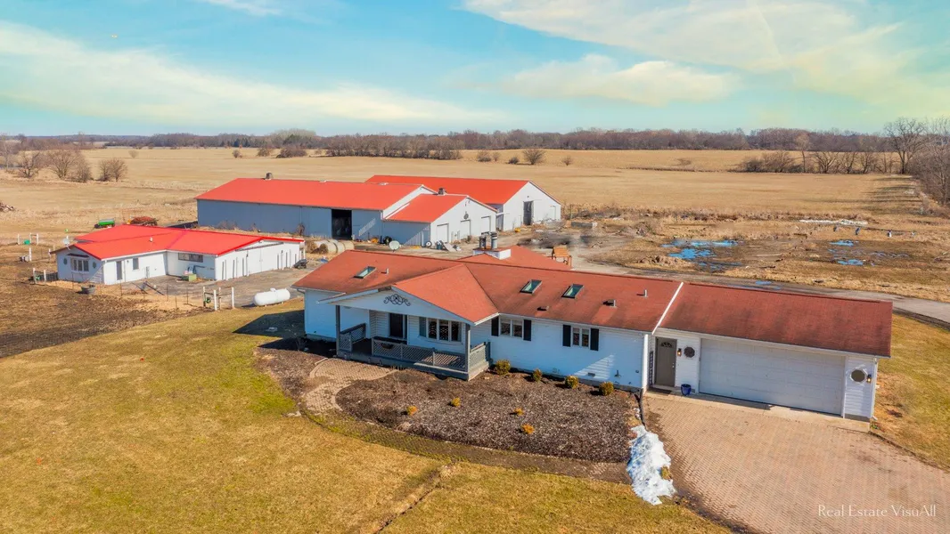 detached garage with three 23 x 18 bays, 70 x 60 hay barn, 60 x 40