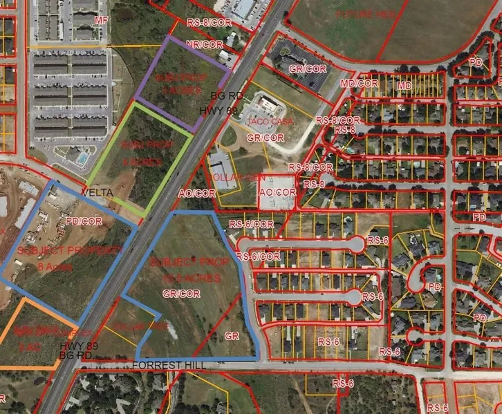 On the SE Quadrant of Buffalo Gap Rd & Forrest Hill. It is planned for a 38,000sf Retail Center and additional .75 ac Pad Site on Forrest Hill (See attached Site Plan) but can be divided into development tracts as desired. Zoned with all utilities in place including detention. 3.8 Acres out of the Floodway for development as shown on the plan with some of the Floodway used for parking or drives. It is all of the land to the north and east of the Dollar Tree or Tract 3 & 4 per the site plan.