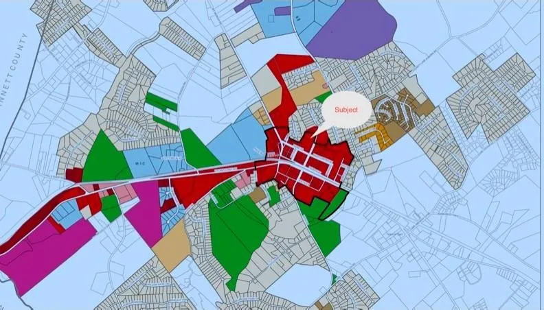 Approximately 7.14 acres corner lot in the city limits and the Overlay district of Auburn GA! The current zoning is C-2 . There are many possible uses including