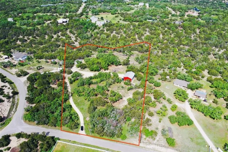 Beautiful 5 acre tract with large oaks and long distant panoramic views. Fenced on 3 sides. Back of property ends in middle of the seasonal creek, which flows really well during good rains. Property comes with a large barn/workshop with concrete floors and 2 sheds. This is it folks. One look is all it takes...