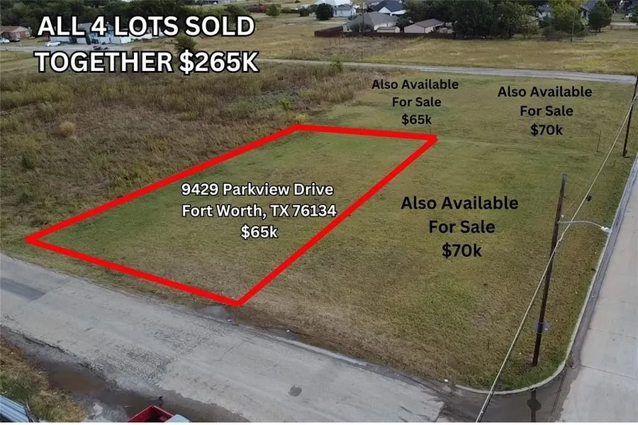 Investor-Developer Opportunity in Crowley, TX! Located at 9433 Parkview Drive, this prime lot is being sold together with 3 adjoining lots for a total package price of $265,000. Offering ample space and frontage, this combined property is ideal for residential development, a builder's project, or a long-term investment. Buyer to verify zoning and usage. Situated in a growing area with easy access to major roads and local amenities, the possibilities are wide open. Don’t miss your chance to secure four contiguous lots