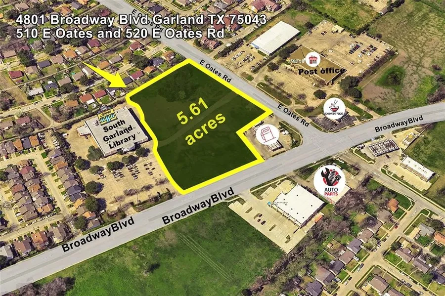 SELLER FINANCING AVAILABLE! Come Build a Strip center, Convenience Store, Day Care, Veterinarian, Dental, Church, Senior Living, Medical, etc. This is a Great location for any Commercial Business wanting a Busy Location that fronts both Broadway & East Oates. There are 3 parcels next to the Library and Post Office and you are Centrally Located. The 3 parcels are 4801 Broadway Blvd (5.2486 acres), 510 E Oates Rd (.1764) and 520 E Oates Rd (.1920 acres). No Car washes. Survey is Available in transaction desk.