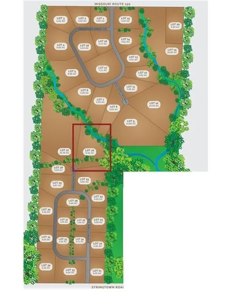 Welcome to Crawford Creek Estates. Jackson Counties NEWEST Premier Rural Acreage Community. Crawford Creek Estates Consists of 236 acres featuring 38 Private Estate sized acreage lots with hardwired broadband internet and 360-degree breathtaking views. These 38 lots range in size starting at 3 acres and vary all the way up to 22 acres and provide the unique opportunity for you to BUY NOW and BUILD LATER. Crawford Creek Estates highlights a variable topography which allows for flat, daylight, and walkout foundations. Running through the middle of this scenic 236 acres includes Crawford Creek itself which showcases its natural beauty with an abundance of wildlife, mature timber, and the comforting soundscape of rural Jackson County. Each one of our lots entail many features to attract a plethora of buyers. This scenic community is included in the Lee’s Summit School district, and is just a...