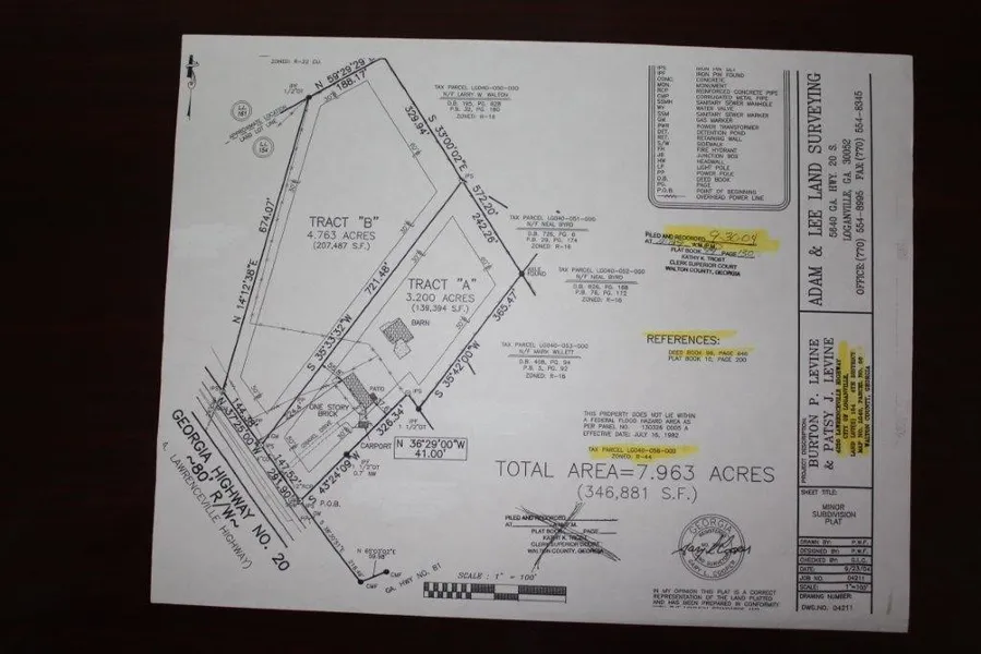 7.96 ACRES OF POTENTIAL COMMERCIAL PROPERTY IN LOGANVILLE CITY LIMITS. GREAT LOCATION FOR POSSIBLE SHOPPING,OFFICE OR MEDICAL. PROPERTY CURRENTLY HAS BRICK RANCH & STORAGE BARN,PUBLIC SEWER IS ON THE PROPERTY,292' OF ROAD FRONTAGE ON GA 20 JUST WEST OF HWY 81 STOP LIGHT. SURVEY IS ALL WE HAVE ON ESTATE PROPERTY. PURCHASER MAY SUBDIVIDE AFTER PURCHASE. PURCHASER TO REZONE. DO NOT ENTER PROPERTY WITHOUT AN APPOINTMENT. HOUSE IS OCCUPIED AND THERE IS NO LOCKBOX.