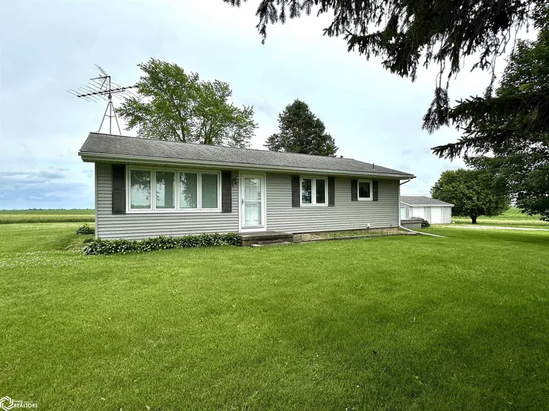 Welcome to peaceful country living in this well-maintained 3-bedroom, 1.5-bath ranch-style home nestled among mature trees. Situated on a spacious lot, this property offers privacy, comfort, and endless potential. Inside, you’ll find a warm and inviting kitchen featuring rich cherry cabinets and an adjacent dining area perfect for family meals or entertaining. The spacious living room boasts a large window for plenty of natural light. The main level also includes a full bath and three comfortable bedrooms with natural light and scenic views. Step outside onto the durable composite deck—an ideal spot to relax and enjoy the tranquil surroundings. The oversized two-stall detached garage provides ample storage and workspace. The full, unfinished basement includes a half bath, laundry area, and plenty of room to create additional living space, a home office, or a recreational area to suit your needs. Whether you're looking to settle into a quiet retreat or want room to grow, this property offers the perfect canvas. Don’t miss your chance to own a piece of the countryside!