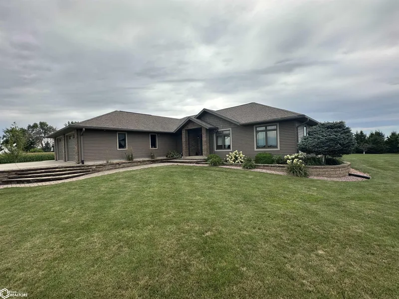 Beautiful acreage on hard surfaced road. 1/8 mile off of Hwy 3 making it perfect for Clarion, Goldfield, Eagle Grove, Belmond, or Humboldt. This 2010 built home features a brick front with a 2 stall attached garage. The well maintained landscape makes this an eye catcher that stands out. You can watch the whole family from the kitchen. Speaking of kitchen, check out all the cupboard space in this one. Plenty of counter space for all your needs as well. The appliances stay and furniture can stay as well making this move in ready. The large master bedroom with walk in closet and master bath are ideal for anyone. The other two bedrooms and full bath are great for kids or guests. The sunroom off the dining room is a wonderful place to either hang out or enjoy the peacefulness of this acreage with lots of windows. The mature trees for the windbreak encompass the Northeast part of the acreage. The full basement is unfinished but is plumbed for a bathroom. The poured Styrofoam block system walls are energy efficient and ready to be finished for more living space. The home is heated and cooled by a geothermal system making it very efficient. There is a very nice 48 x 60 machine shed that has concrete poured on the front half with gravel in the back, with electricity. Water is from Holmes and costs $120 per year. To make this acreage yours, give us a call today to schedule your private viewing.
